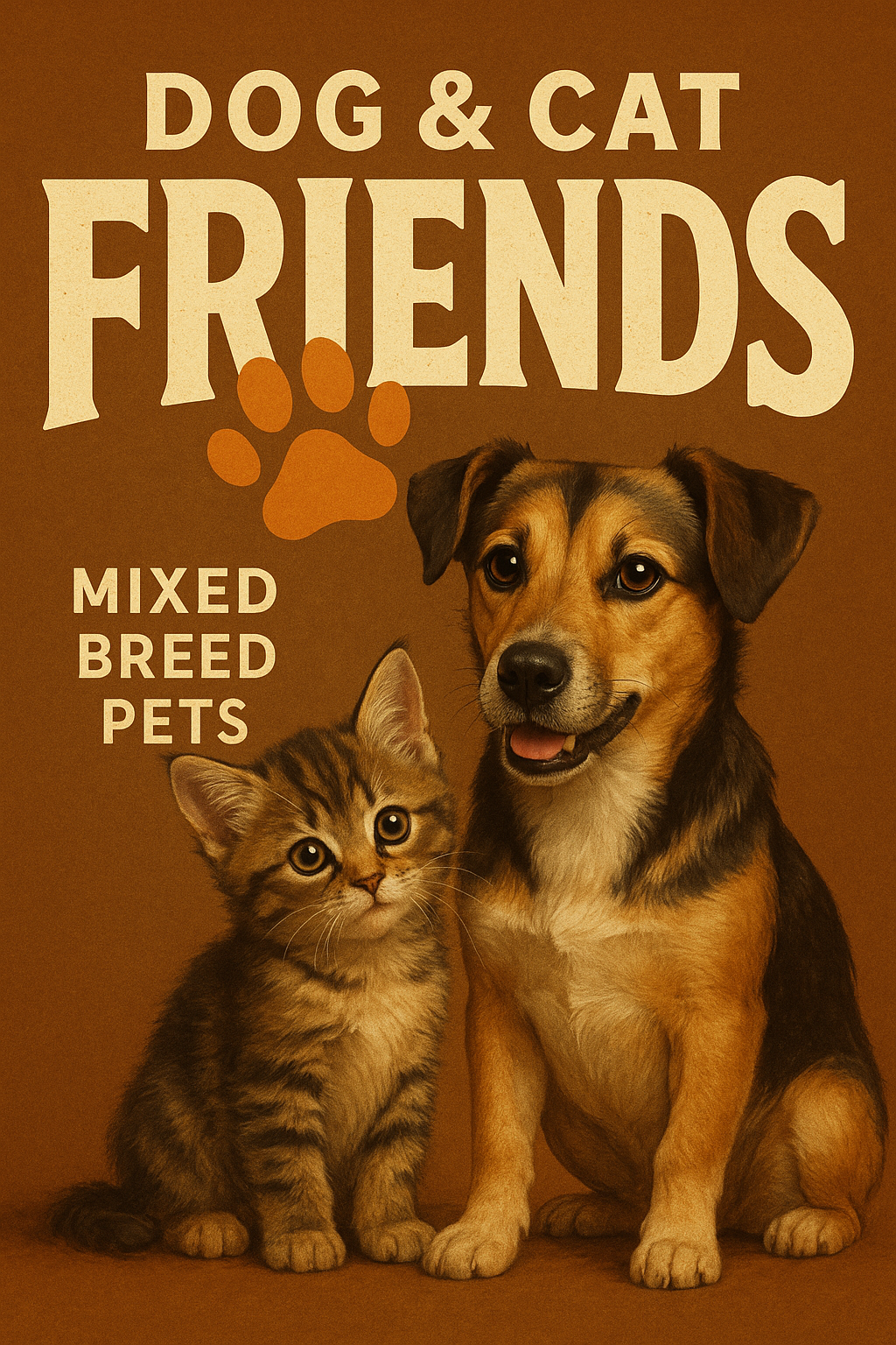 Adorable Puppy and Kitten Embrace in Modern Design
