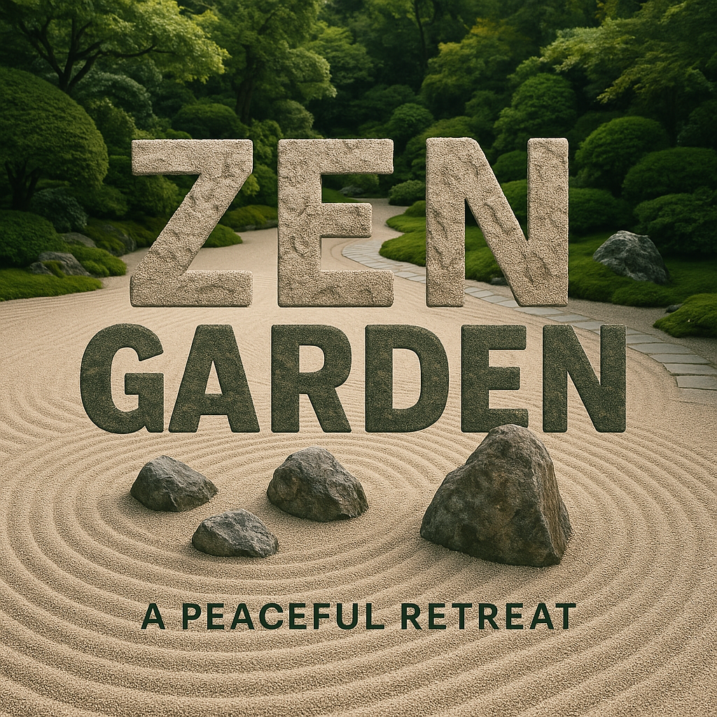 A tranquil zen garden image featuring meticulously arranged sand patterns and stones, designed to evoke a sense of peace and relaxation, ideal for wellness and mindfulness content.