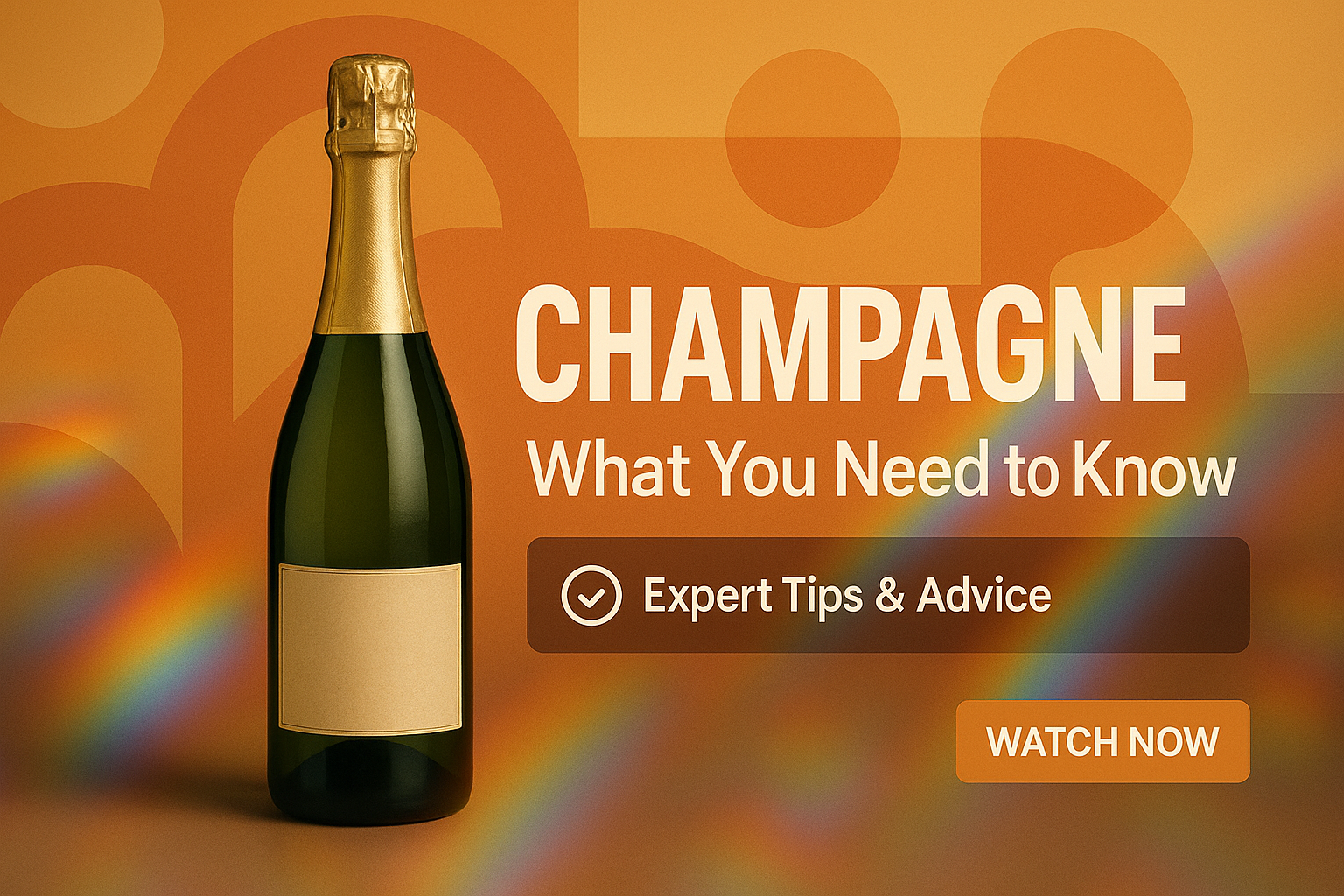 /Collection: /by davooda/Type: PNG/Engaging promotional graphic featuring a champagne bottle with a vibrant background, designed to provide expert tips and advice on champagne. Ideal for social media or blog use.