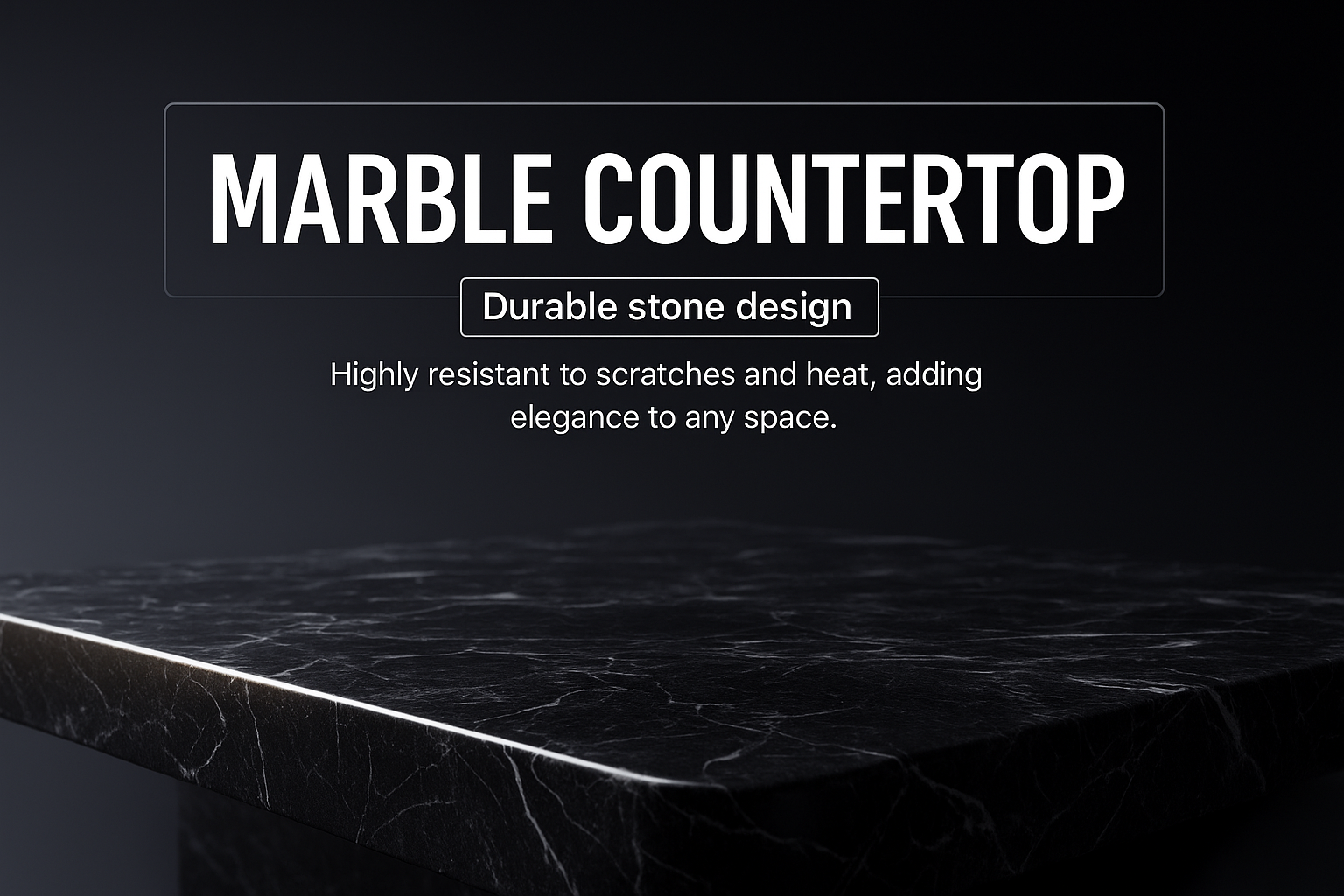 Elegant Black Marble Countertop with Text Overlay