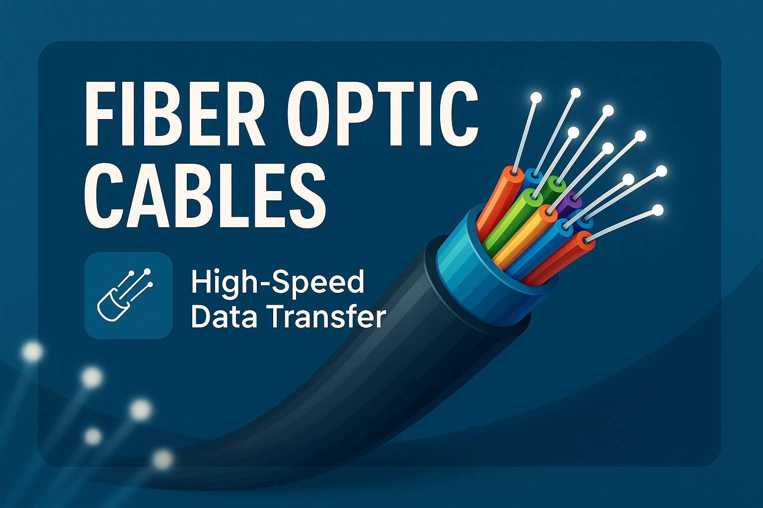 Modern graphic illustrating fiber optic cables, highlighting their role in high-speed data transfer. Ideal for tech-related content and educational materials.