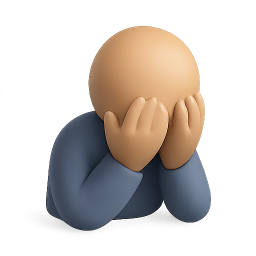 /Collection: /by davooda/Type: PNG/A 3D emoji design depicting a figure in a state of sadness, represented with hands covering the face. Ideal for emotional expression in digital communication.