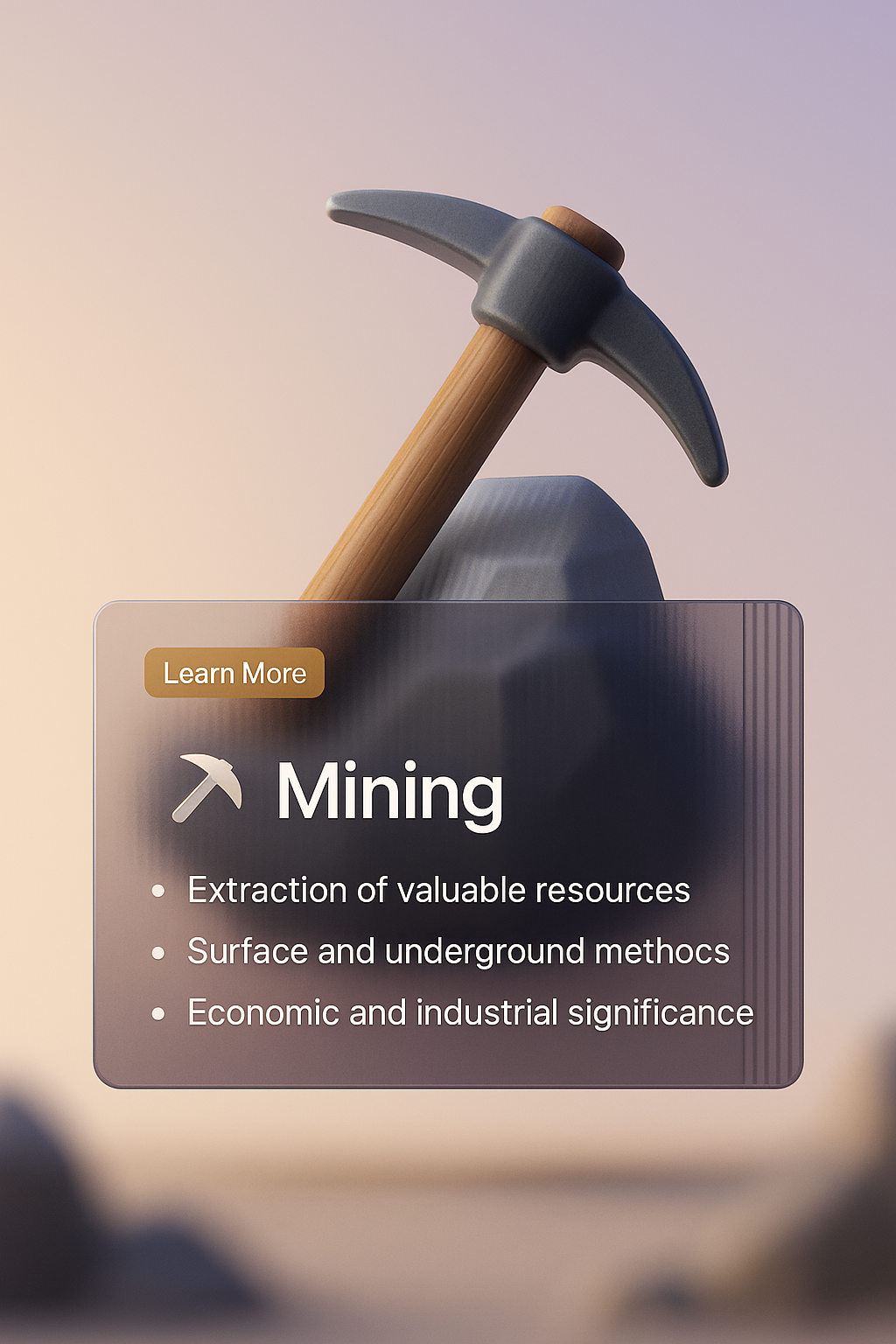 /Collection: /by davooda/Type: PNG/A visually striking 3D illustration representing mining. Features a pickaxe with a transparent overlay block containing informative text. The design incorporates a smooth gradient background and light tones for clarity.