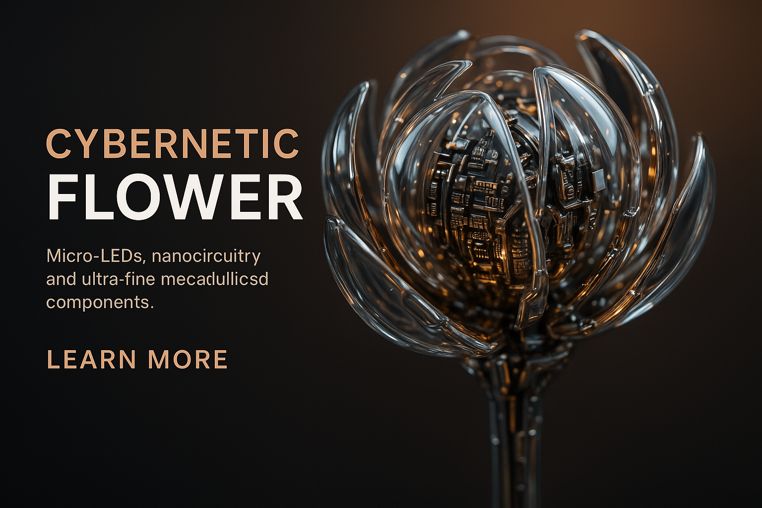 Hyperrealistic Cybernetic Flower with Glowing Micro-LEDs