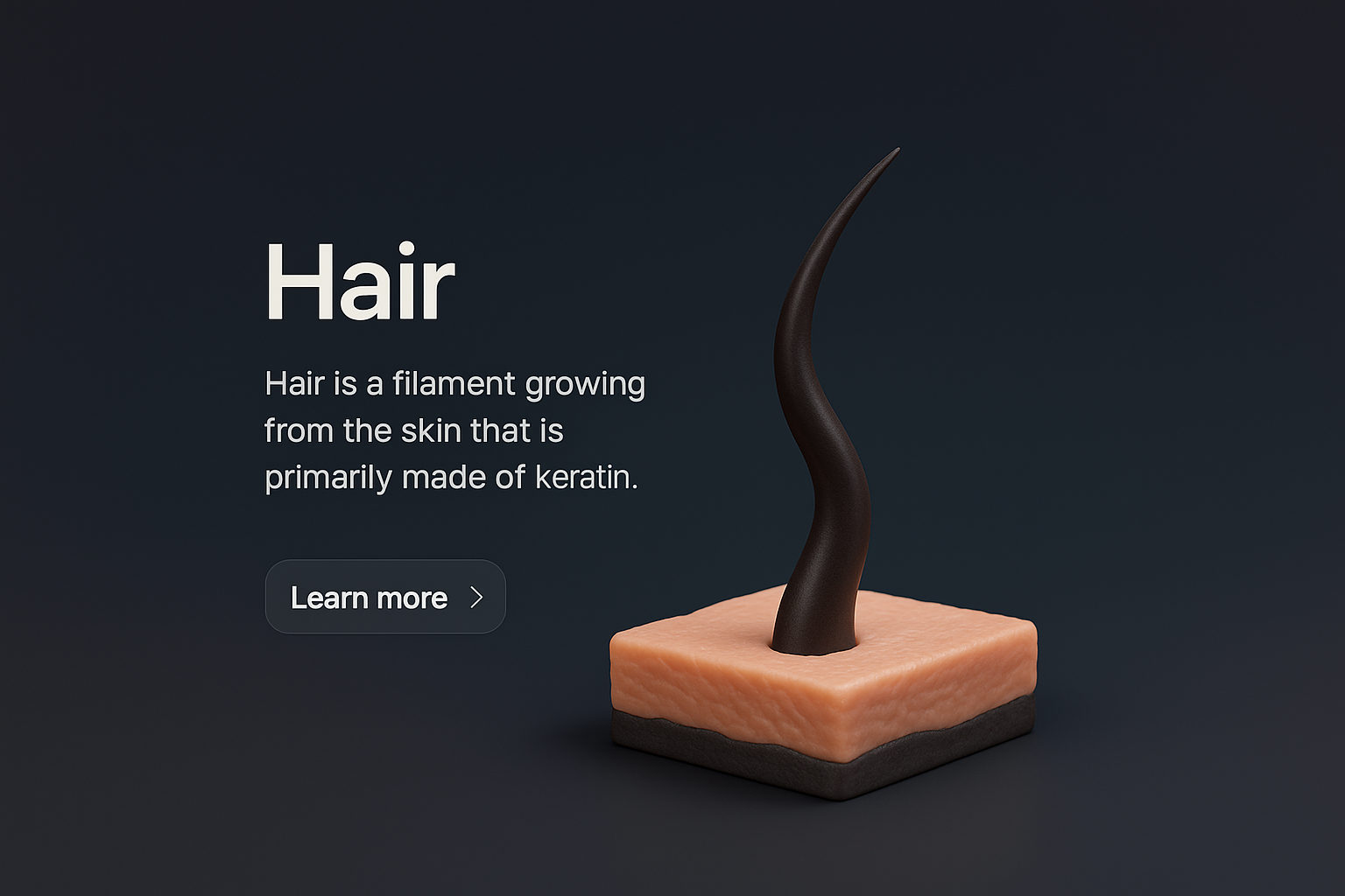 /Collection: /by davooda/Type: PNG/This image showcases a realistic 3D rendering of a hair strand emerging from a textured base, set against a dark gradient background. The design emphasizes hair's natural characteristics.