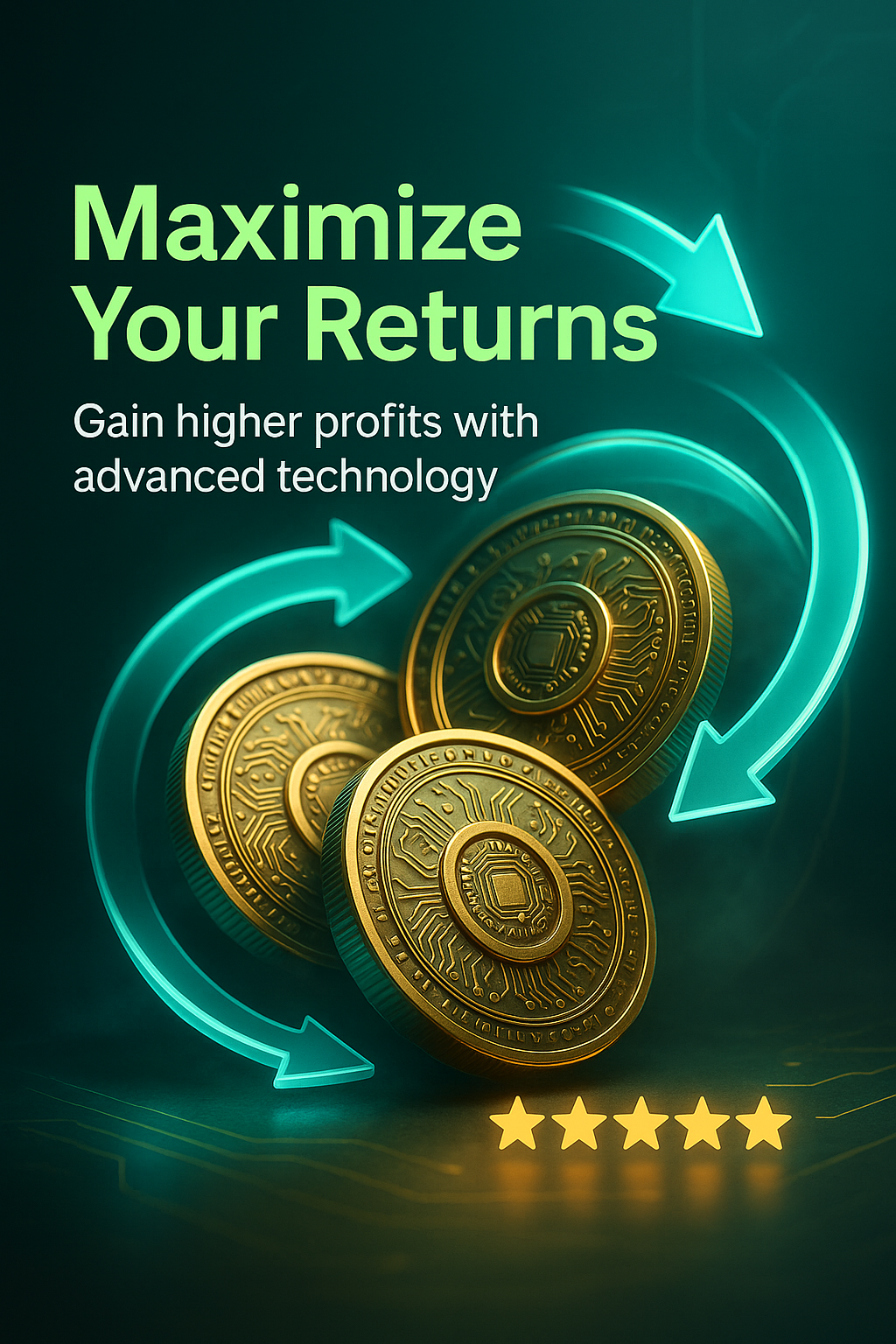/Collection: /by davooda/Type: PNG/Dynamic promotional image showcasing coins with a glowing arrow design, symbolizing profit maximization through advanced technology. Suitable for fintech marketing.