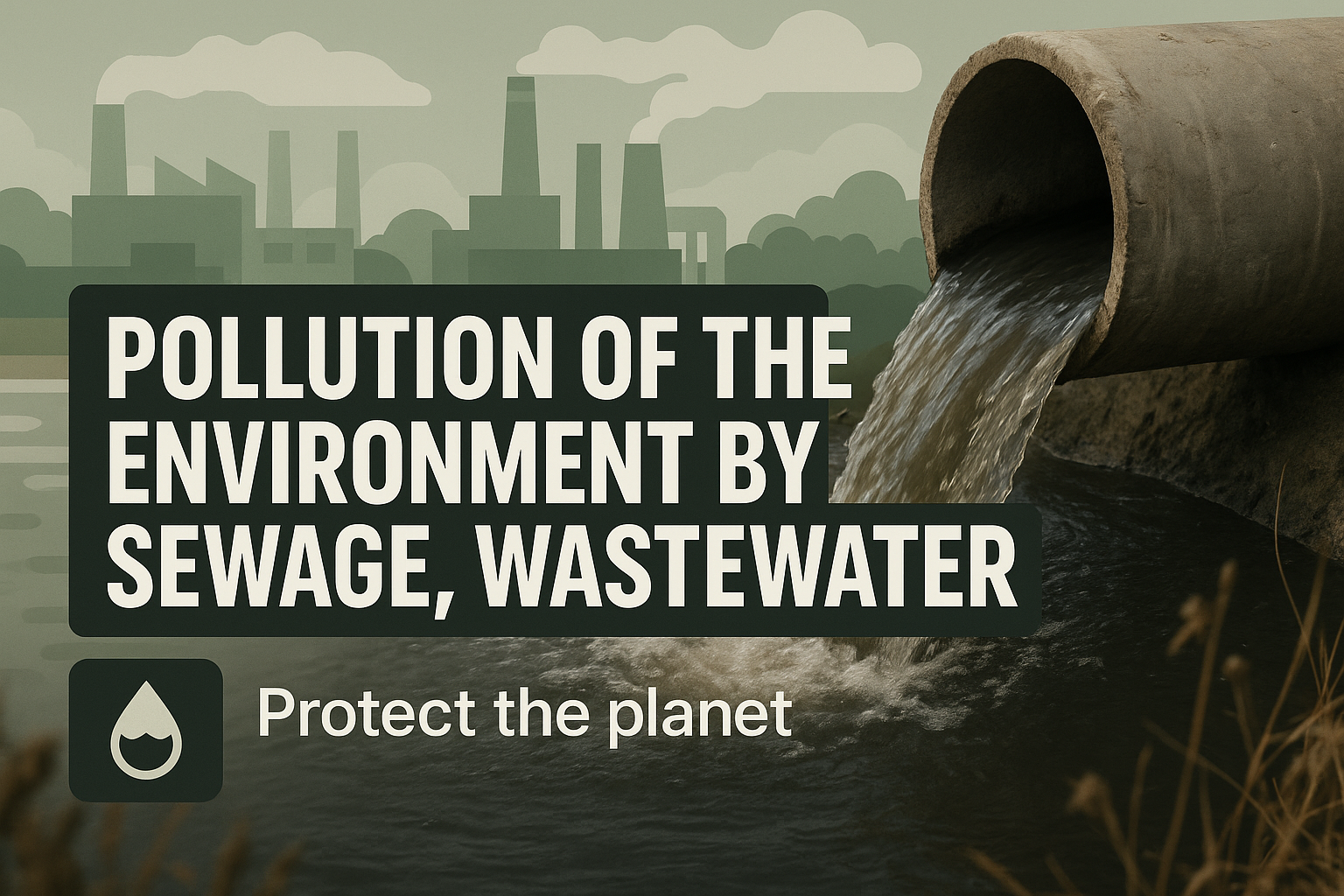 /Collection: /by davooda/Type: PNG/Informative graphic illustrating the impact of sewage and wastewater pollution on the environment, designed for educational campaigns focusing on environmental protection.