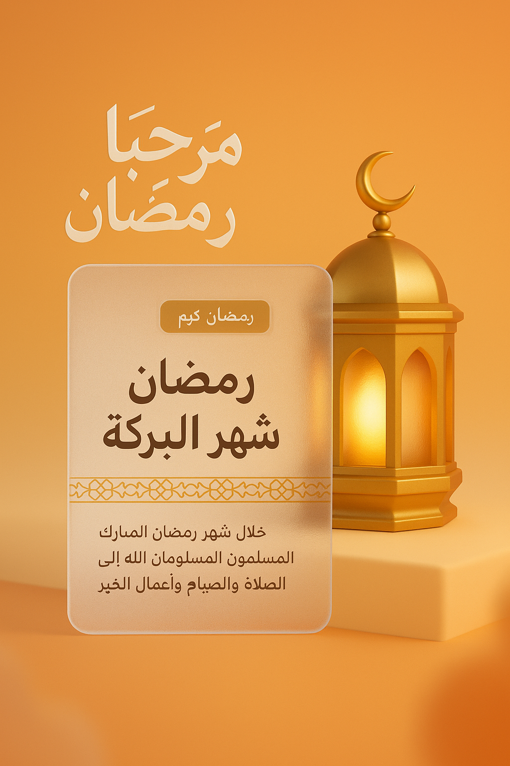 /Collection: /by davooda/Type: PNG/This image features a warm, inviting design for Ramadan, showcasing Arabic text and a lantern. The background transitions from a gradient to a solid color, enhancing the festive atmosphere.