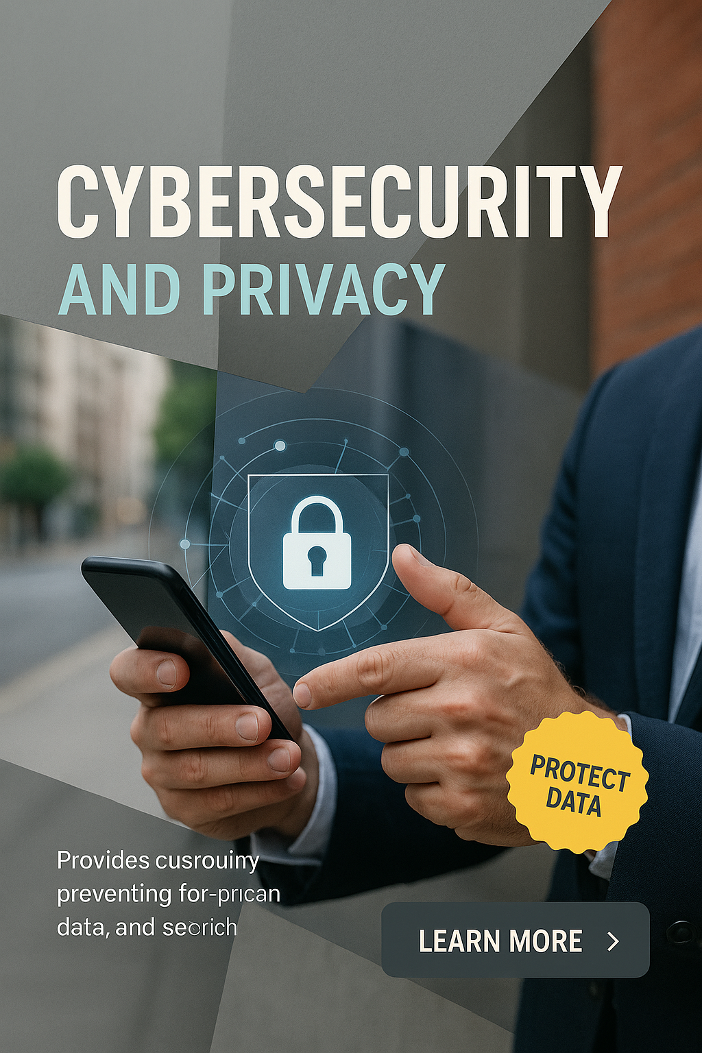 /Collection: /by davooda/Type: PNG/An image showcasing cybersecurity and privacy with a businessman using a smartphone. A lock icon symbolizes data protection amidst a layered visual structure, emphasizing security technology.
