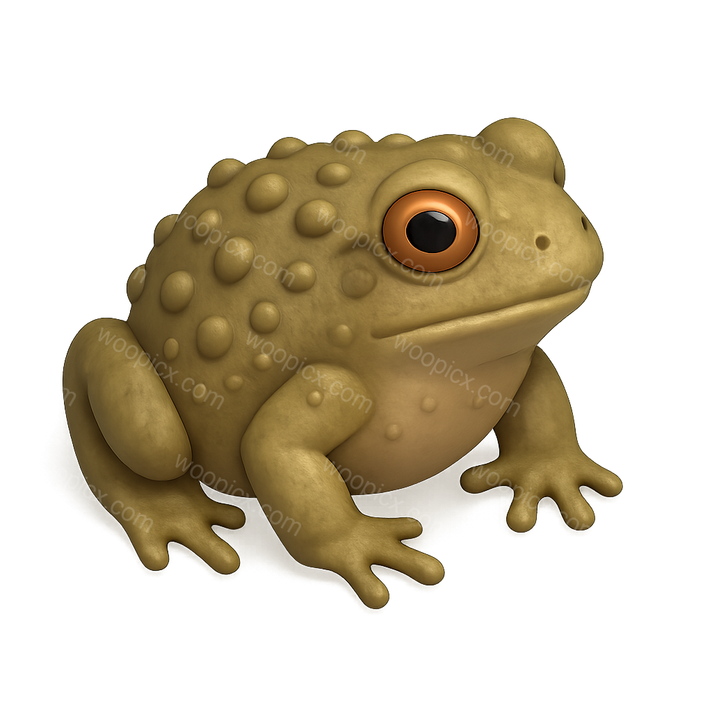 A detailed 3D depiction of a toad featuring warty skin, presented in a three-quarter isometric view. The character exhibits a volumetric design with a transparent background.
