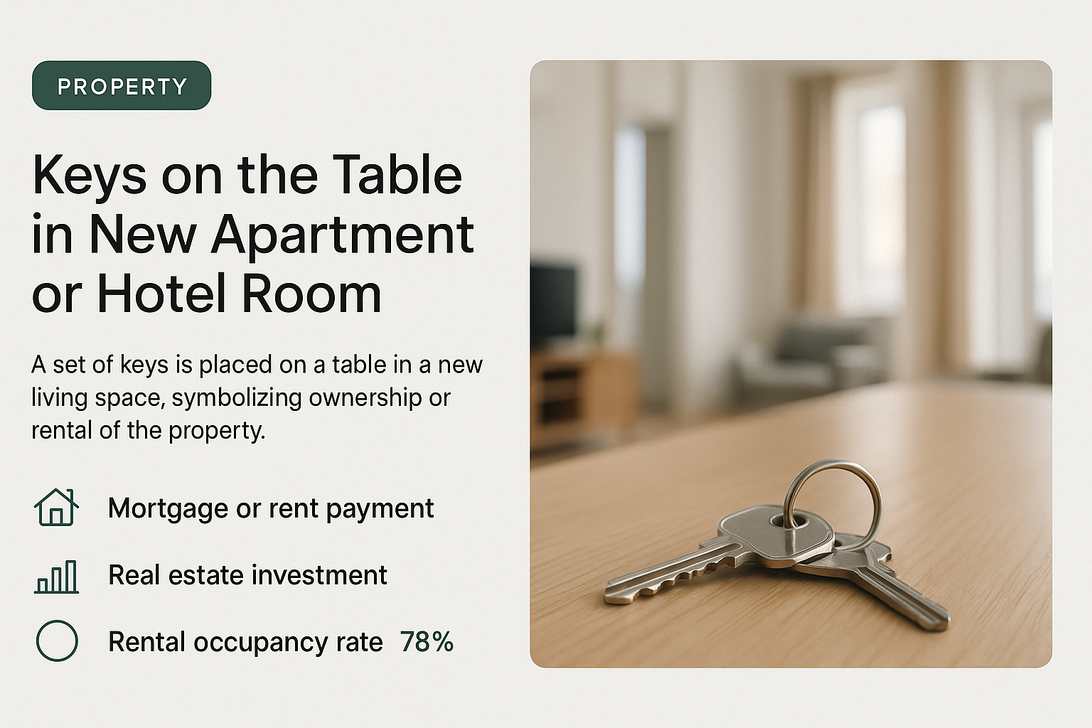 /Collection: /by davooda/Type: PNG/A simple yet effective image showcasing a set of keys on a table, representing new apartment or hotel room ownership, ideal for real estate marketing and rental listings.