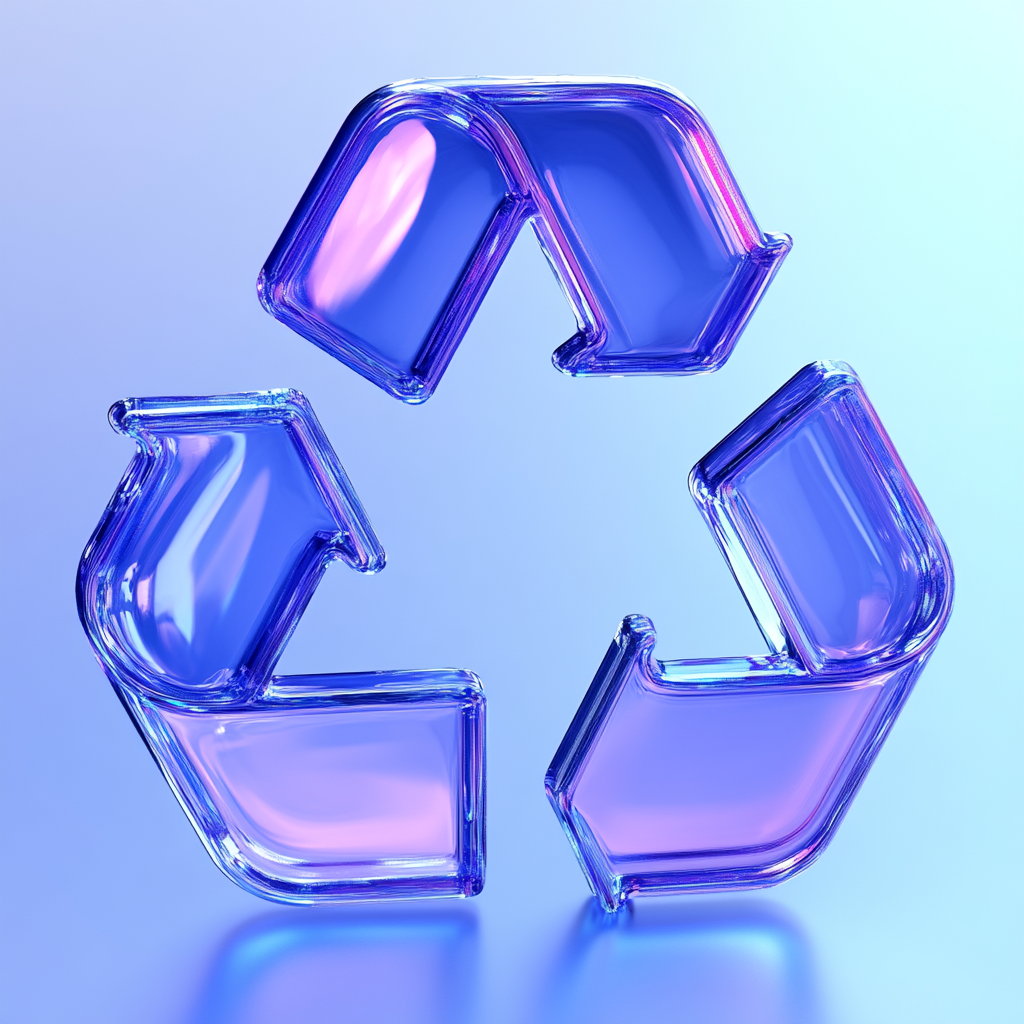 Stylized 3D Glass Recycling Symbol in Vibrant Colors