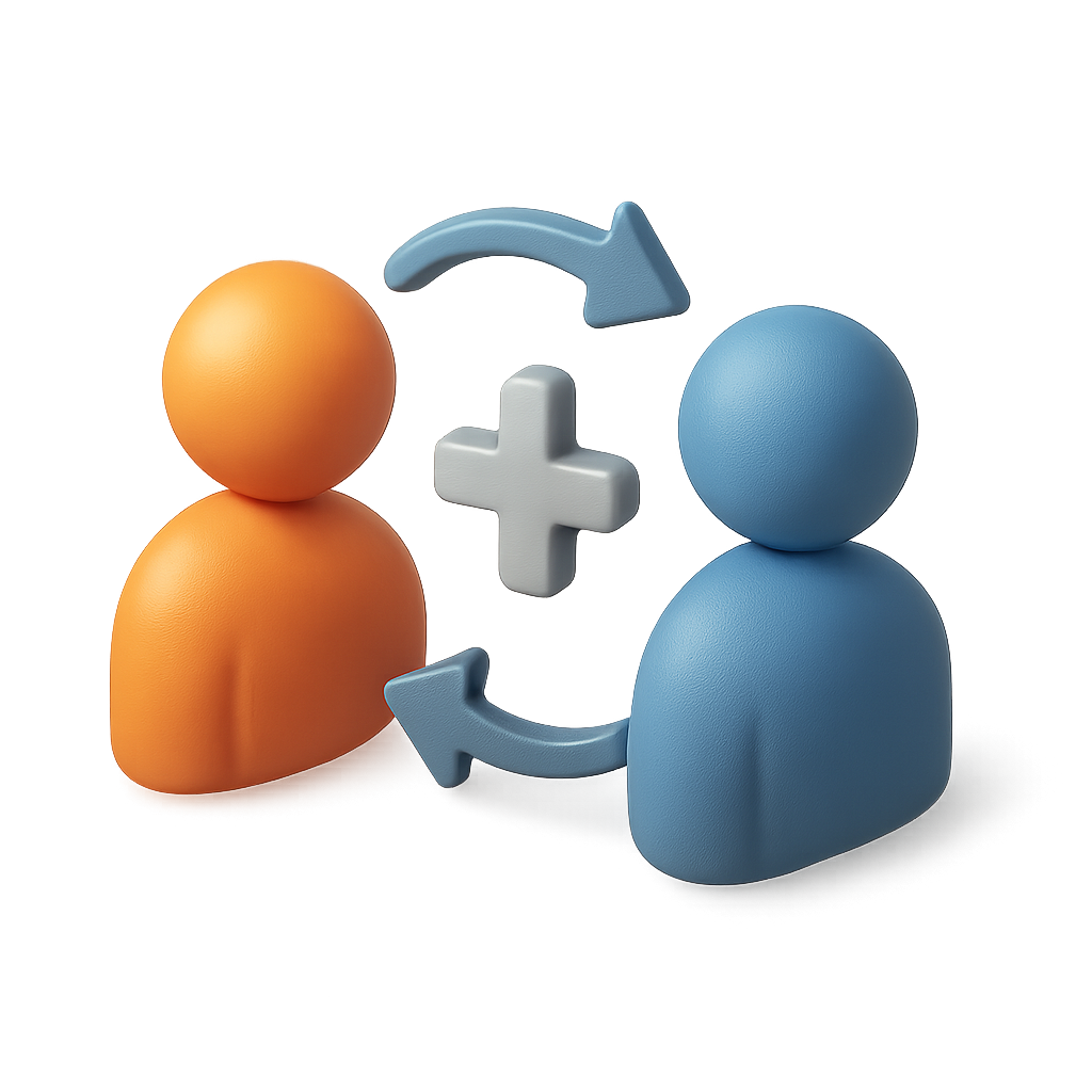 3D Icon of Two People with Plus Symbol in Between