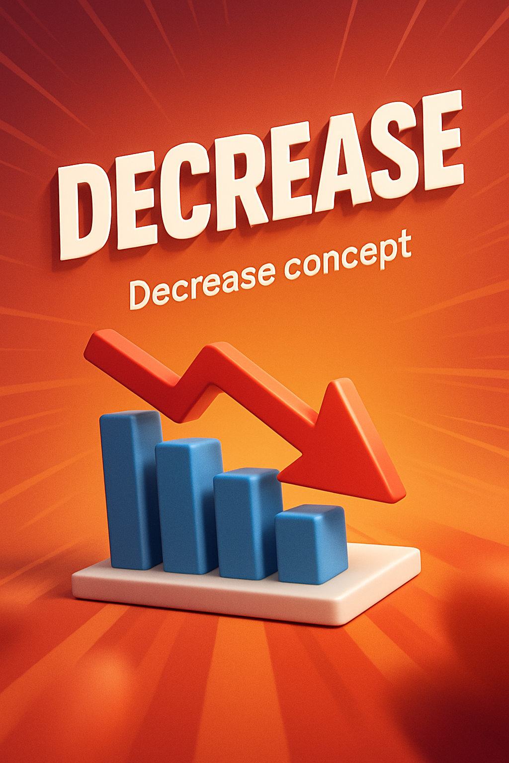 A visually striking 3D graphic representing a decrease concept, featuring a declining graph with an arrow. Ideal for educational or financial content.