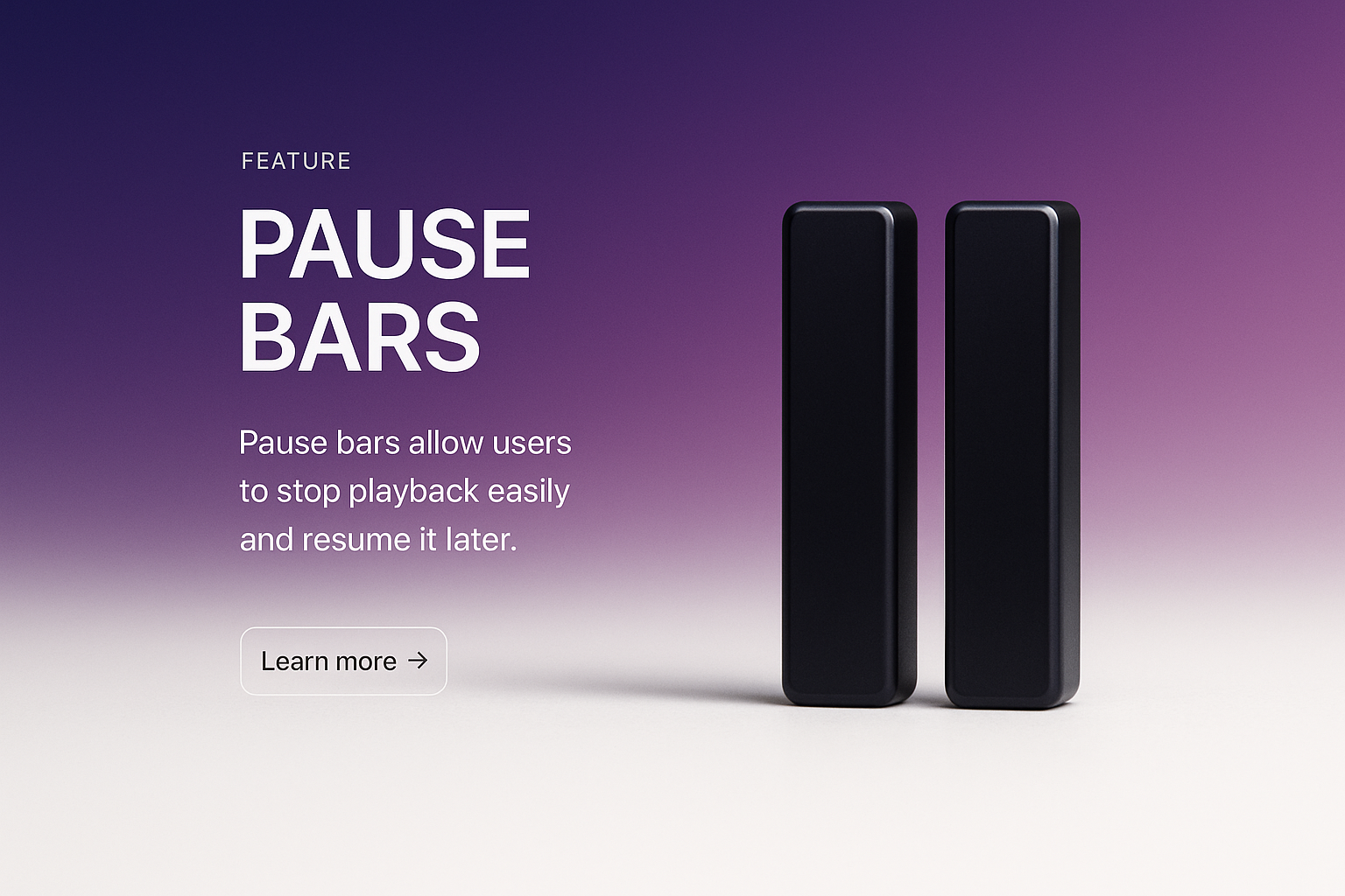 /Collection: /by davooda/Type: PNG/A sleek web design for the 'Pause Bars' feature, featuring a two-color gradient background and minimalistic elements. The layout includes a small label, a concise heading, and a text block with a call-to-action button.