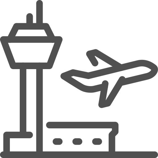 outline simple icon: airplane, airport, control tower, flight, transportation