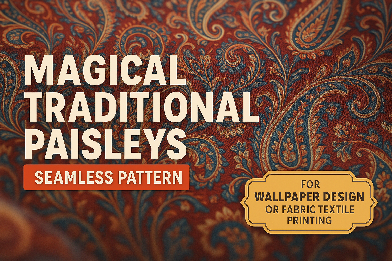/Collection: /by davooda/Type: PNG/A vibrant and intricate seamless paisley pattern suitable for wallpaper and fabric textile printing. The design features rich colors and traditional motifs, appealing to interior designers and craft enthusiasts.