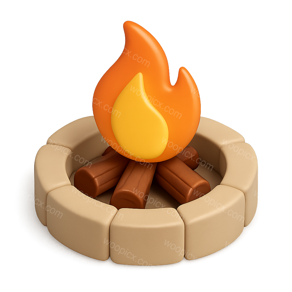 Stylized 3D Fire Pit Icon with Logs and Flames