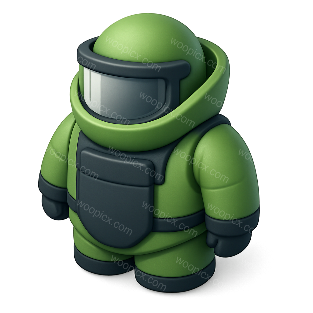 A stylized 3D icon of a bomb suit in green, featuring a rounded design and a three-quarter view, set against a soft gradient background for depth.