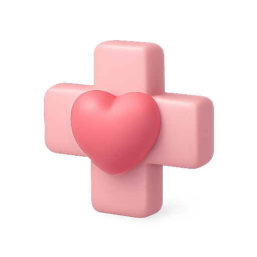 /Collection: /by davooda/Type: PNG/A modern and playful graphic featuring a pink heart integrated with a medical cross shape, ideal for health and wellness themes. The design is simplistic yet impactful, suitable for use in healthcare marketing or emotional well-being campaigns.