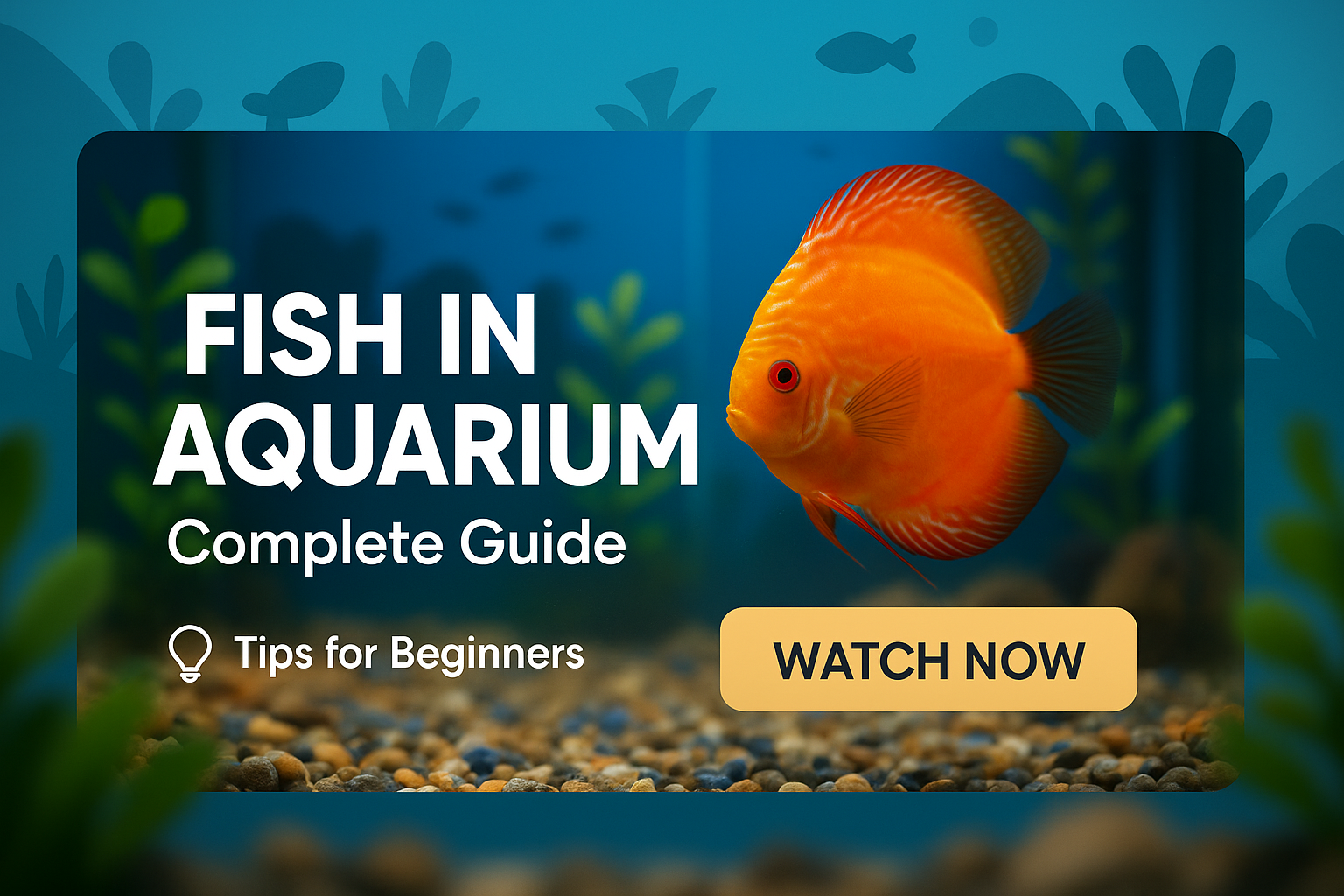 Engaging promotional graphic for a guide on aquarium fish care, incorporating vibrant imagery and a clear call to action, ideal for beginner enthusiasts.