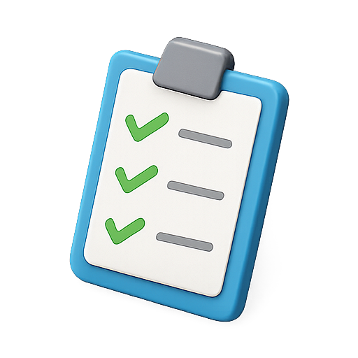 Stylized 3D checklist icon featuring green check marks, suitable for task management or productivity applications. This icon conveys organization and efficiency.