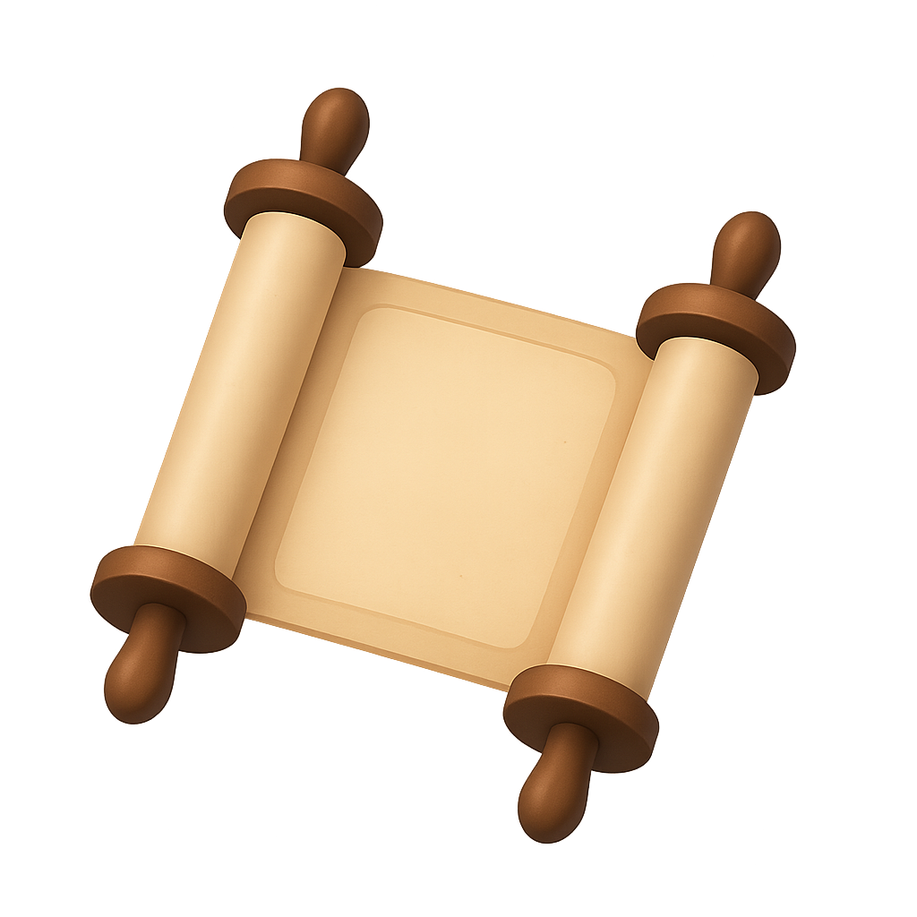 A stylized 3D representation of a Torah scroll, featuring a three-quarter view. The scroll is designed with a smooth finish and isometric perspective, showcasing a warm, inviting color palette.
