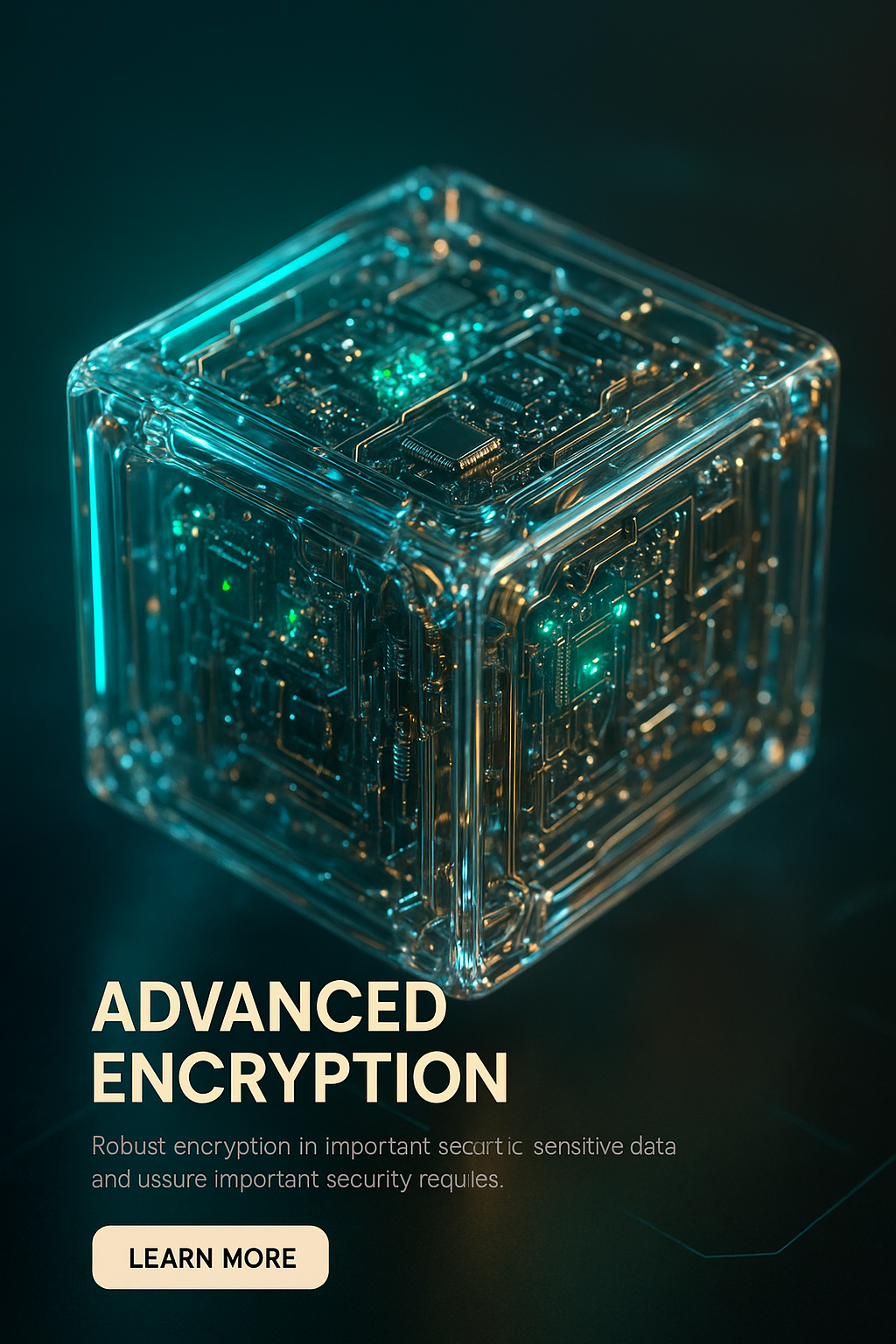 /Collection: /by davooda/Type: PNG/A hyperrealistic hypercube depicting advanced encryption technology. Its glass-like surface reveals glowing micro-LEDs and intricate circuit boards, surrounded by a soft, misty ambiance.
