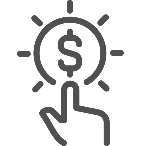 outline simple icon: dollar, hand, interactive, pay, sun
