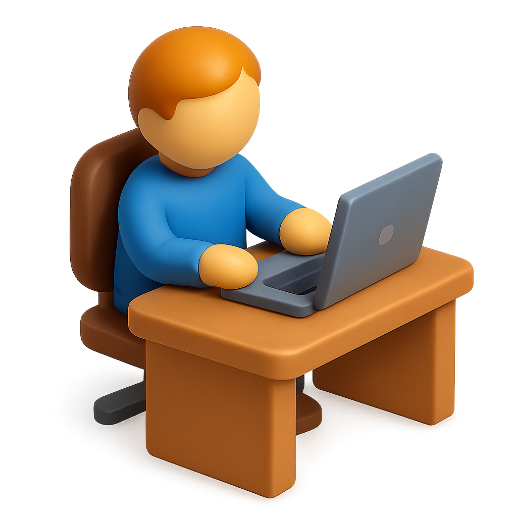 3D Icon of a Desk Worker Engaged in Work