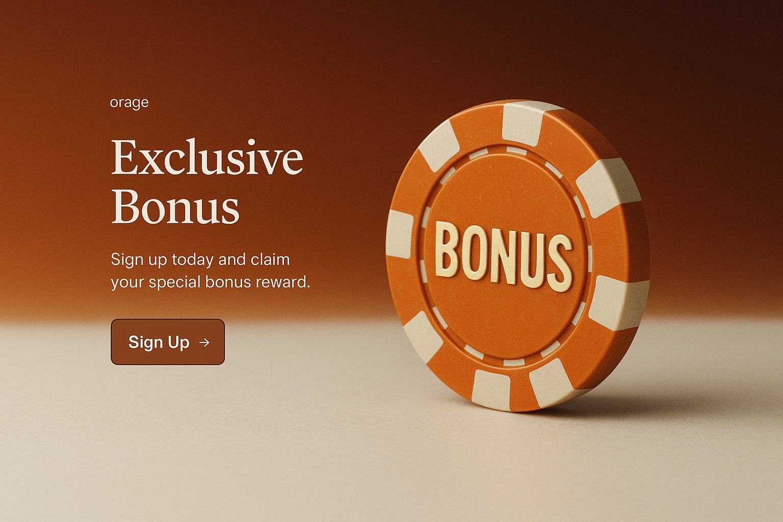 /Collection: /by davooda/Type: PNG/A stylish illustration featuring a bonus chip with the text 'Exclusive Bonus' and a call-to-action button. The background transitions from dark orange to white, enhancing readability.