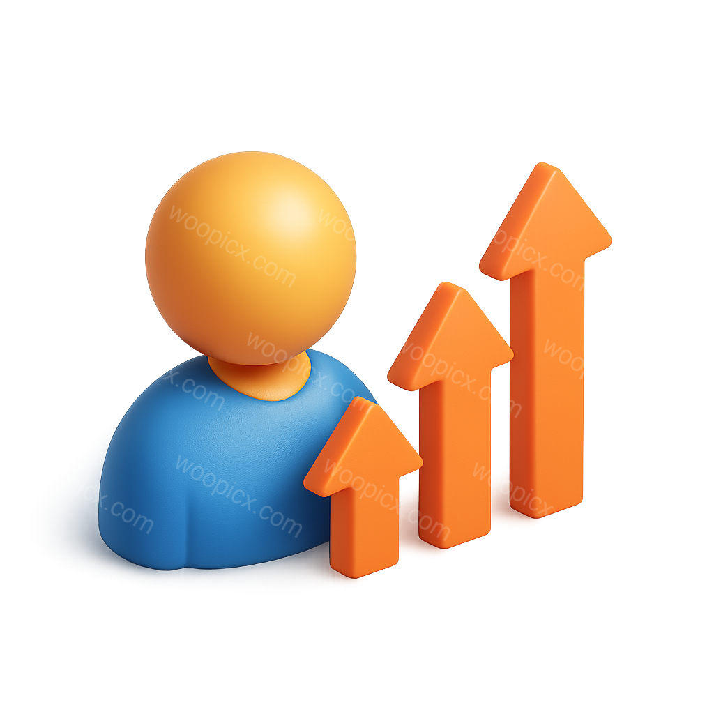 3D Growth Icon Featuring Upward Arrows and a Person