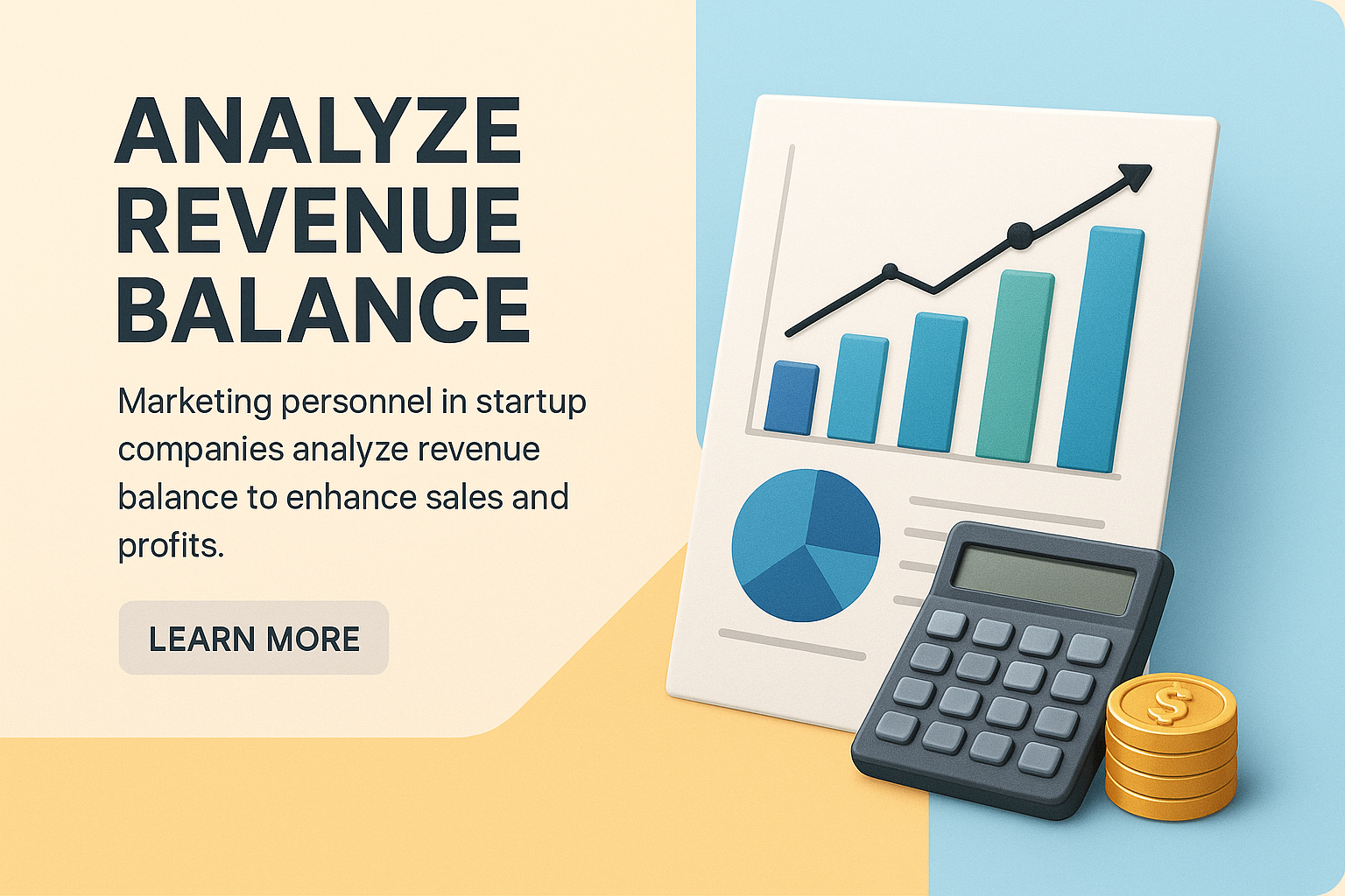 A visually appealing marketing design featuring a calculator, revenue chart, and bold typography, set against a clean, geometric background. Emphasizes clarity and professionalism.