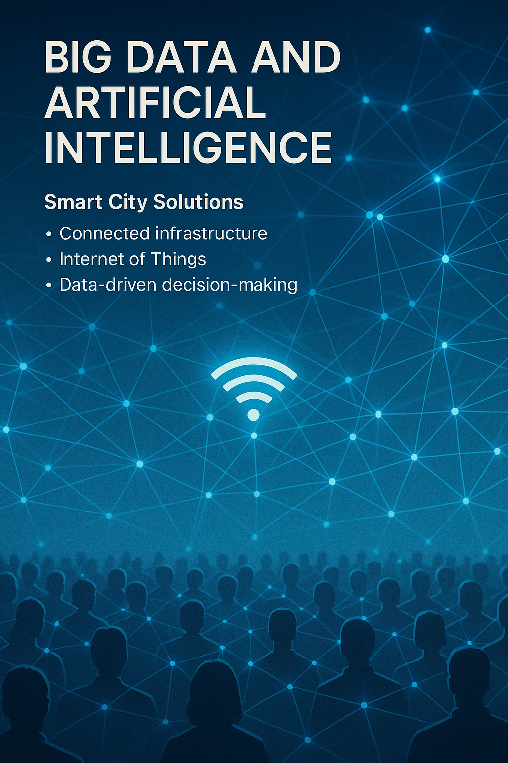/Collection: , /by davooda/Type: PNG/A modern infographic representing Big Data and Artificial Intelligence in smart city solutions, featuring a tech-inspired design with connectivity themes suitable for presentations and tech discussions.