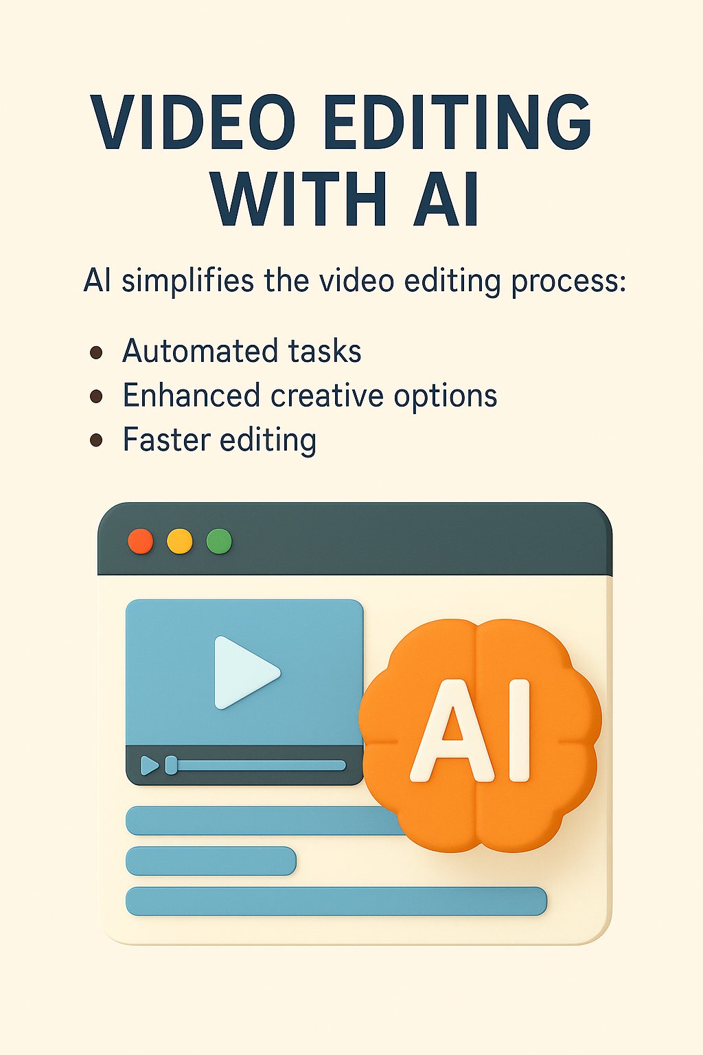 Illustrative graphic highlighting the benefits of AI in video editing, featuring a modern design and playful elements that appeal to creative professionals and tech enthusiasts.