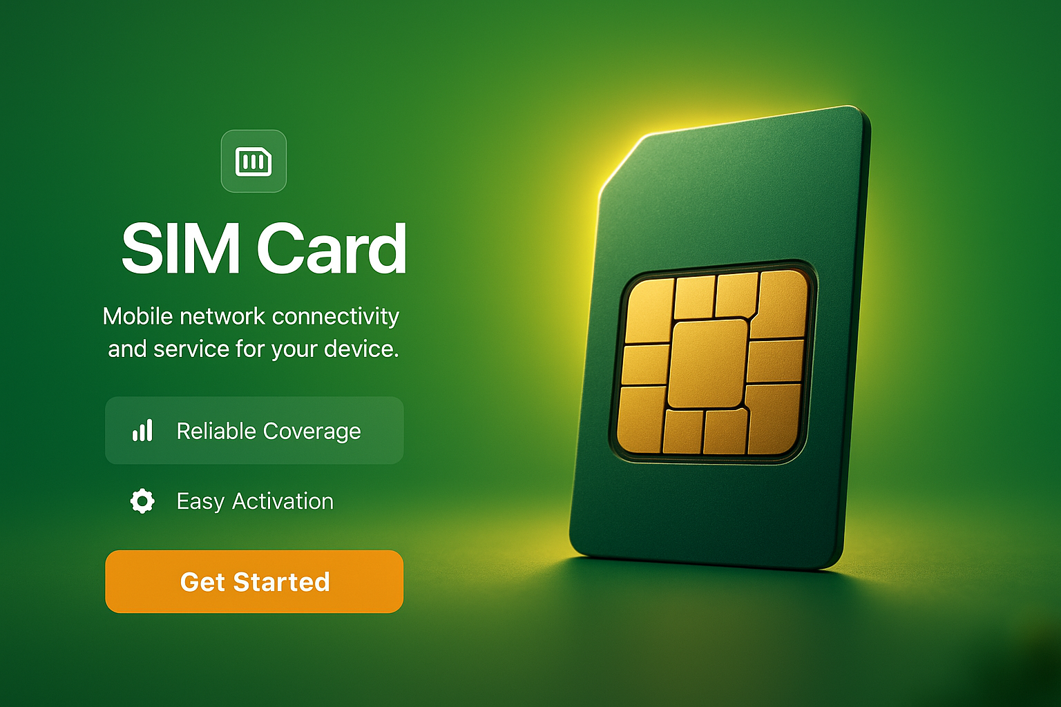 /Collection: /by davooda/Type: PNG/This is a promotional graphic featuring a SIM card, emphasizing mobile network connectivity. The design is modern with a gradient background, suitable for digital marketing.