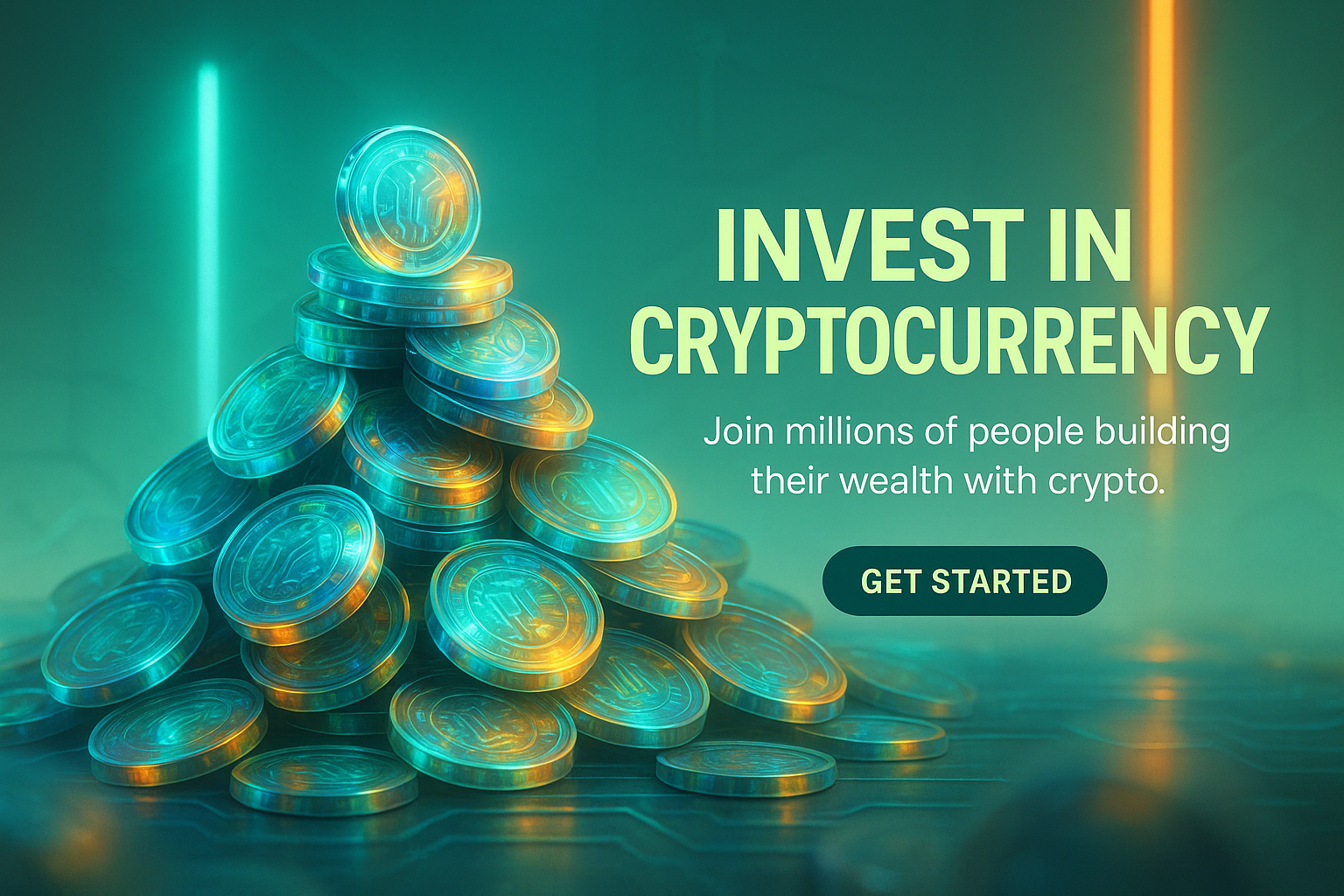 Dynamic Cryptocurrency Investment Graphic with Coin Pile