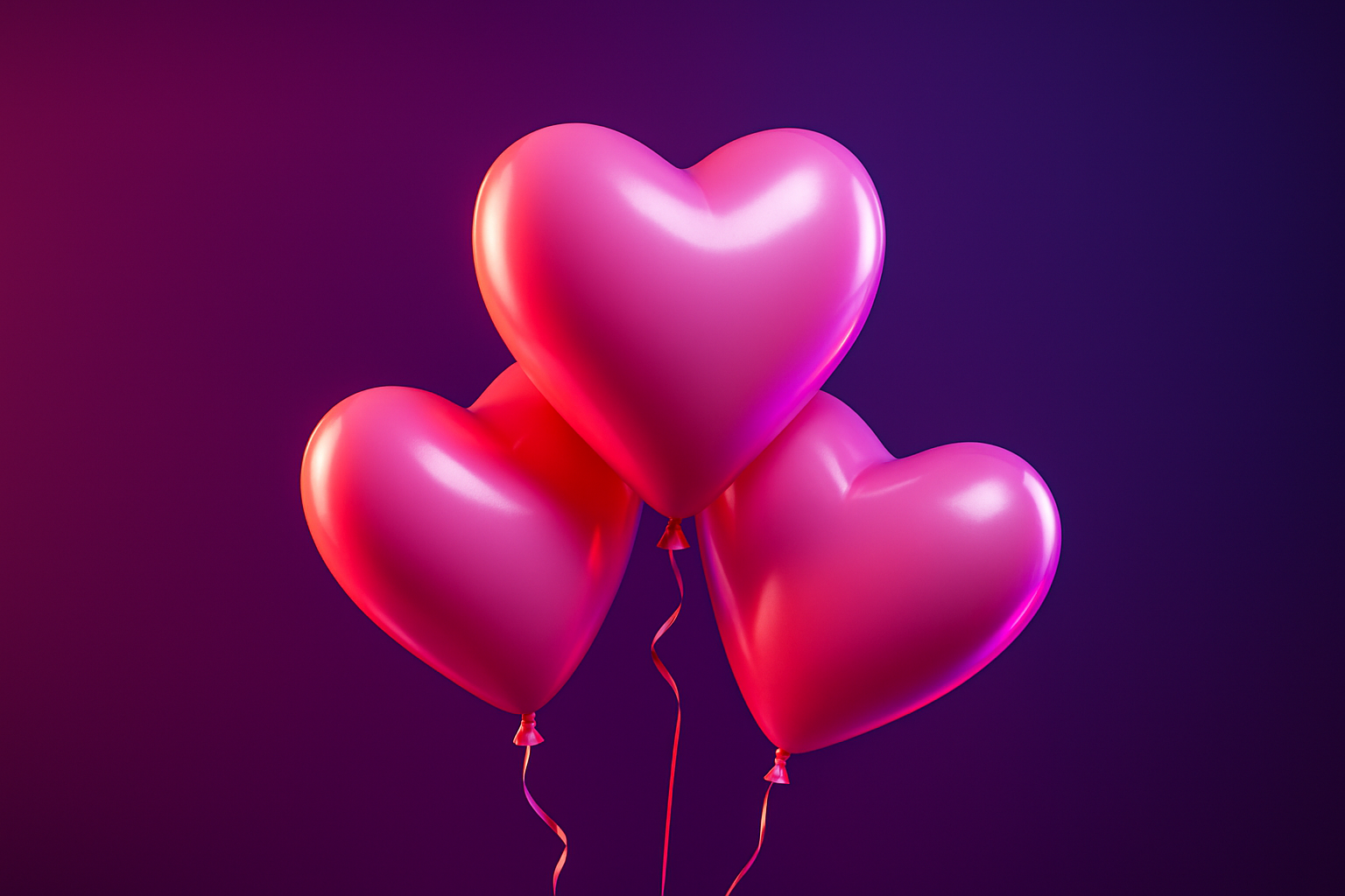 Three Pink Heart-Shaped Balloons on a Vibrant Background
