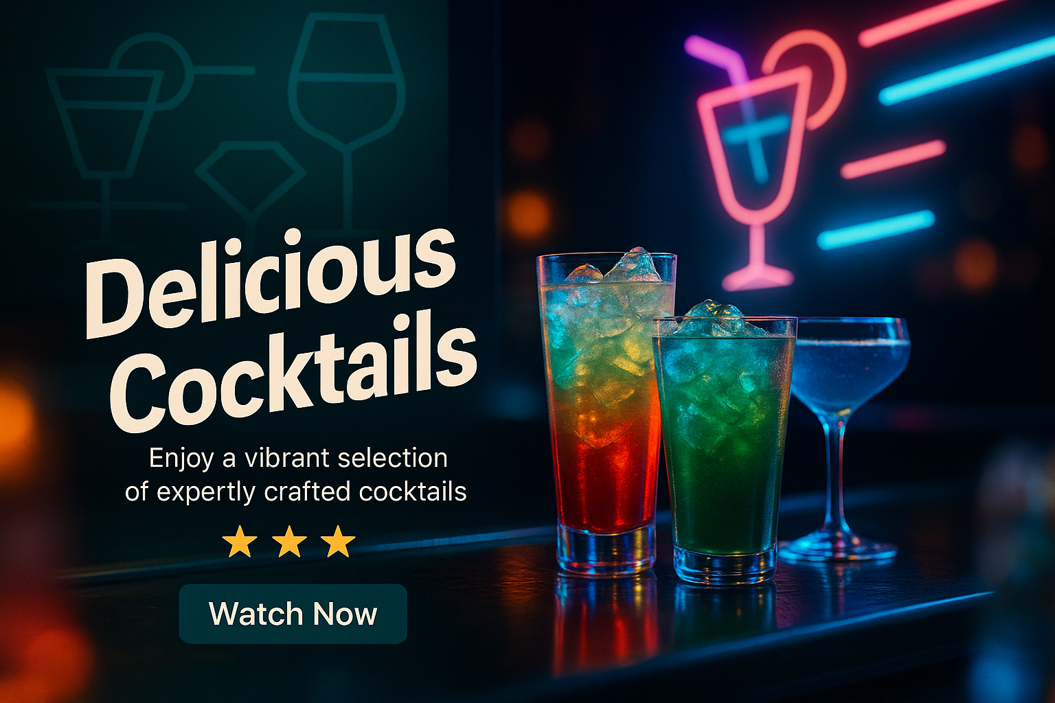 Vibrant Neon Cocktail Promotional Graphic