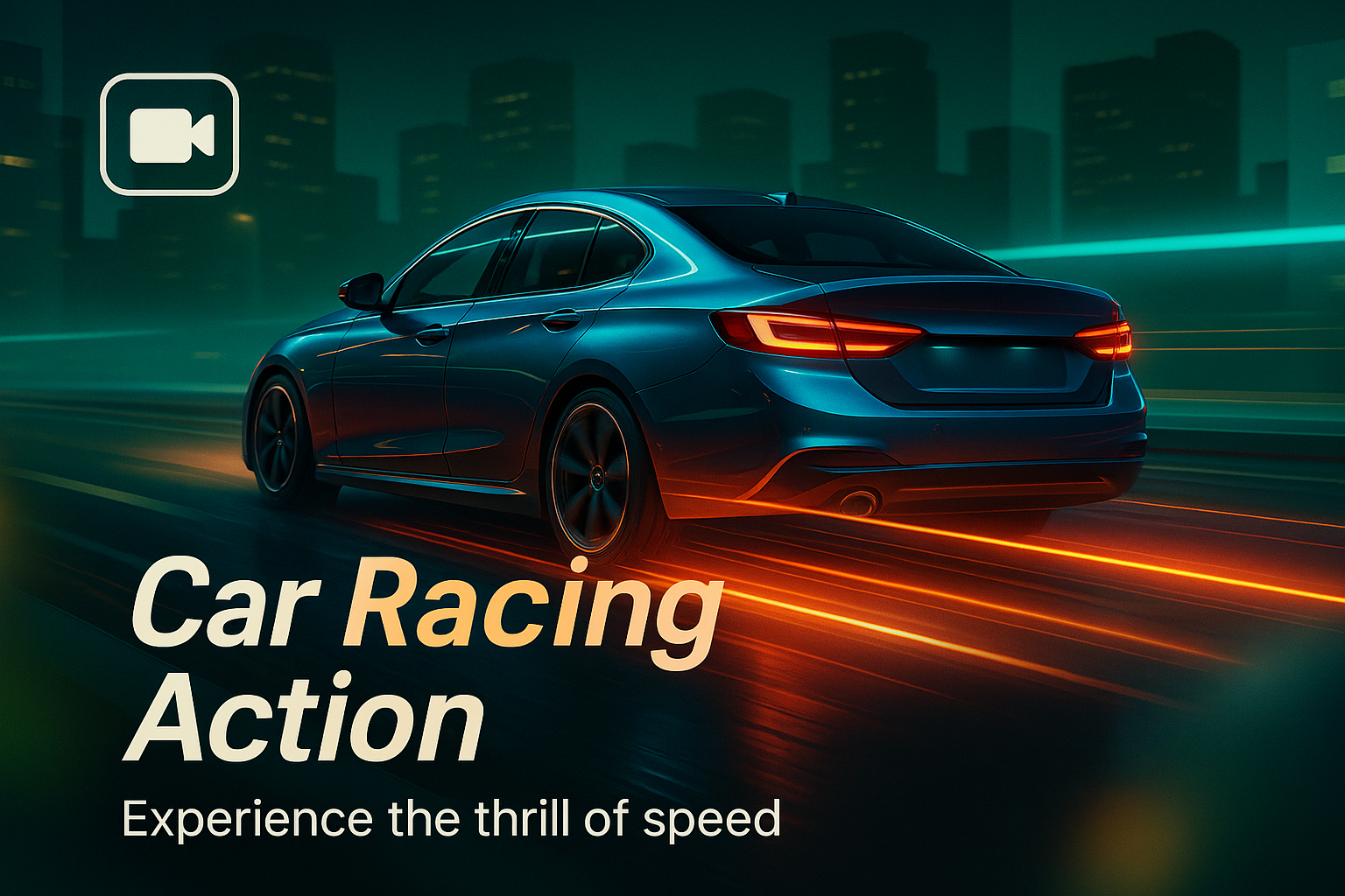 Vibrant graphic showcasing a car in motion with glowing trails, ideal for promoting racing events or automotive content. The design conveys speed and excitement.