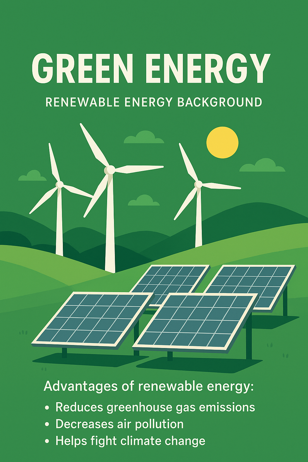 Illustrative Green Energy Concept with Wind Turbines and Solar Panels