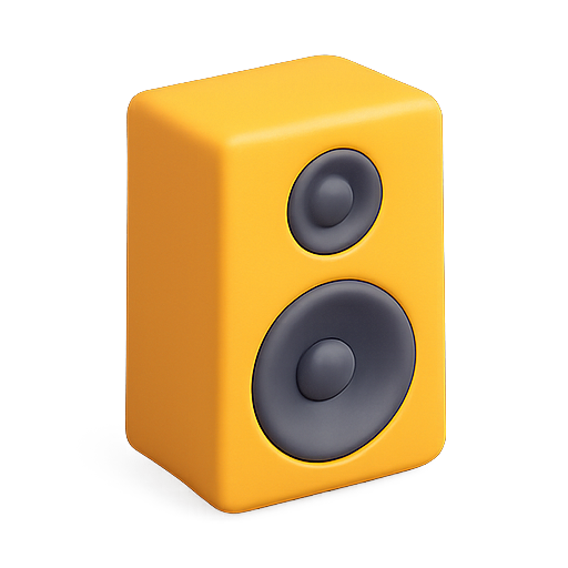 A vibrant 3D illustration of a yellow speaker with two black speaker cones, perfect for music or audio-related applications. Ideal for digital media, apps, or websites.