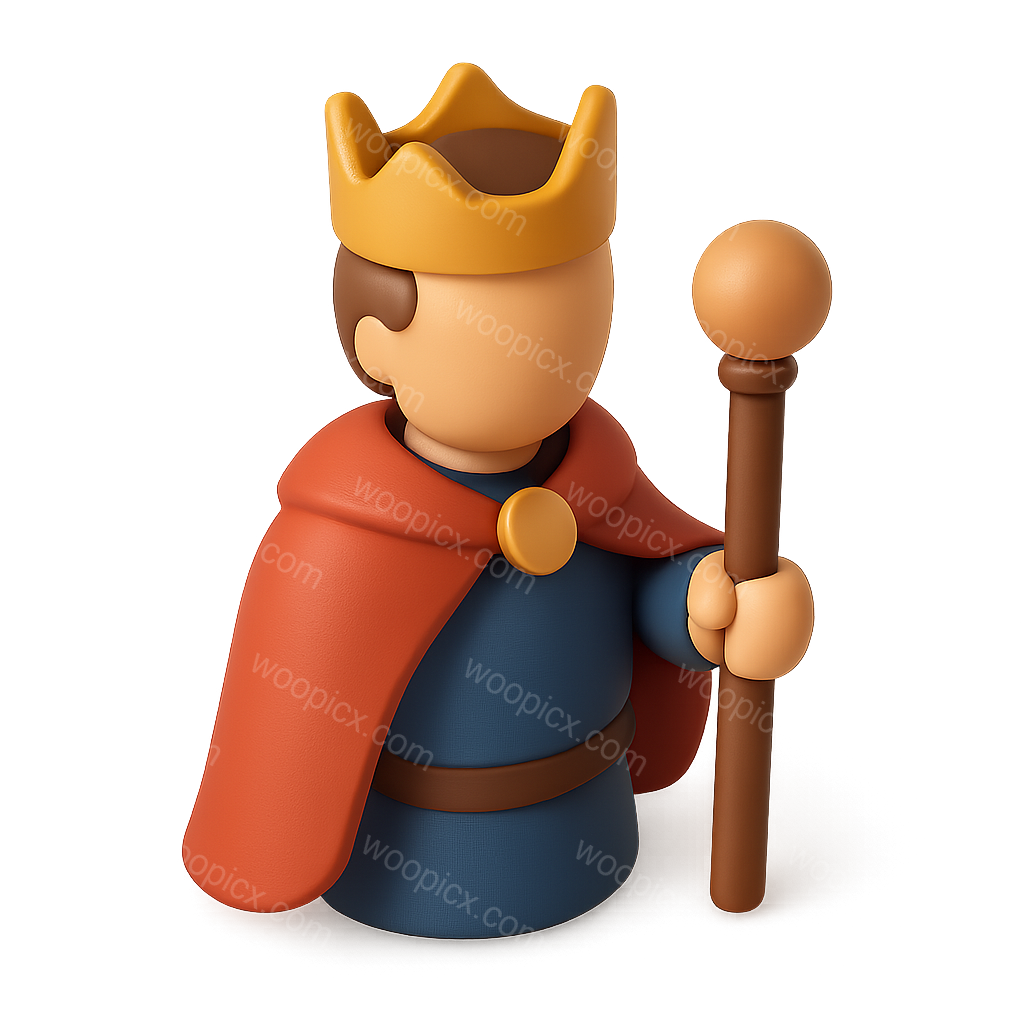 A stylized 3D icon of a lord character wearing a crown and red cape, holding a staff, presented in a three-quarter view with a vibrant gradient background.