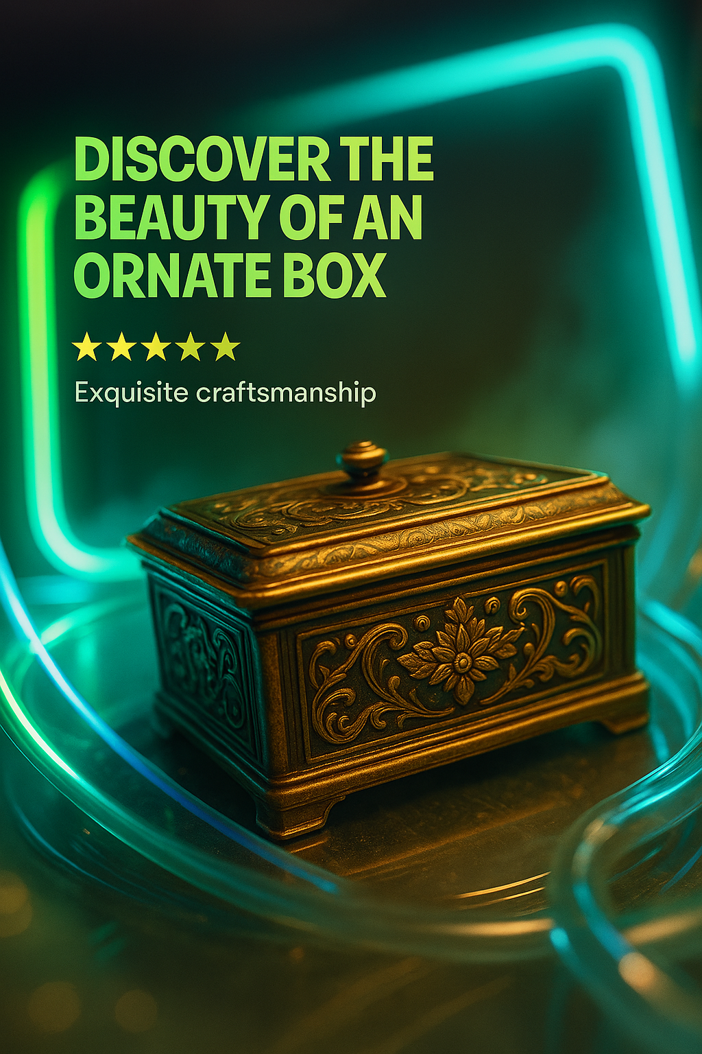 /Collection: /by davooda/Type: PNG/A captivating carousel slide featuring an ornate box, highlighted by neon accents and glowing edges. The design emphasizes exquisite craftsmanship with a dynamic layout.