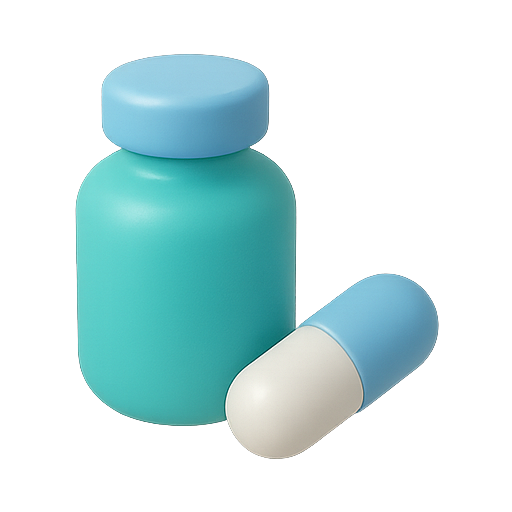 Stylized illustration of a medicine bottle and capsule, featuring a minimalist design with soft colors, suitable for healthcare-related projects or pharmaceutical branding.