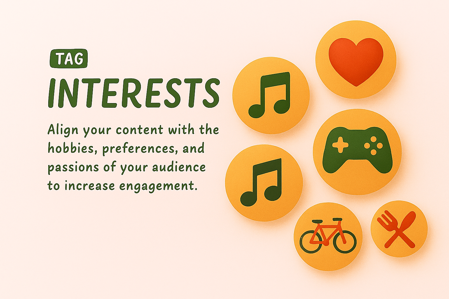 /Collection: /by davooda/Type: PNG/Engaging infographic highlighting the importance of aligning content with audience interests, featuring colorful icons representing hobbies and activities. Ideal for marketing and content strategy presentations.