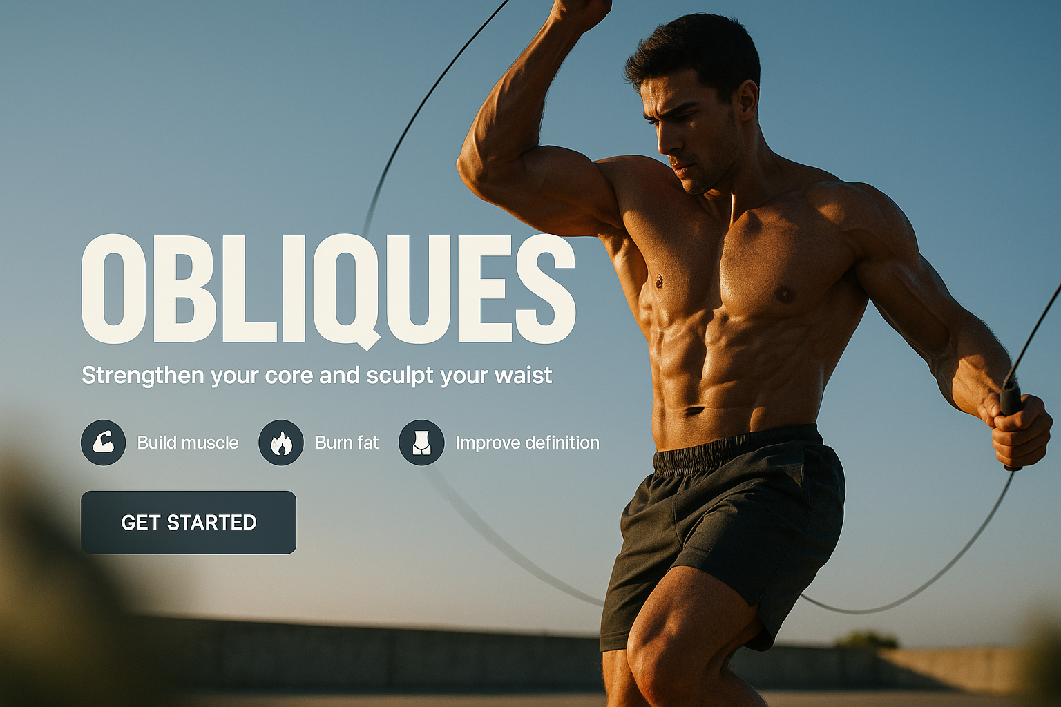 /Collection: /by davooda/Type: PNG/This is a promotional social media post featuring a muscular man exercising to strengthen obliques. The modern design focuses on fitness and health, targeting a fitness-oriented audience.
