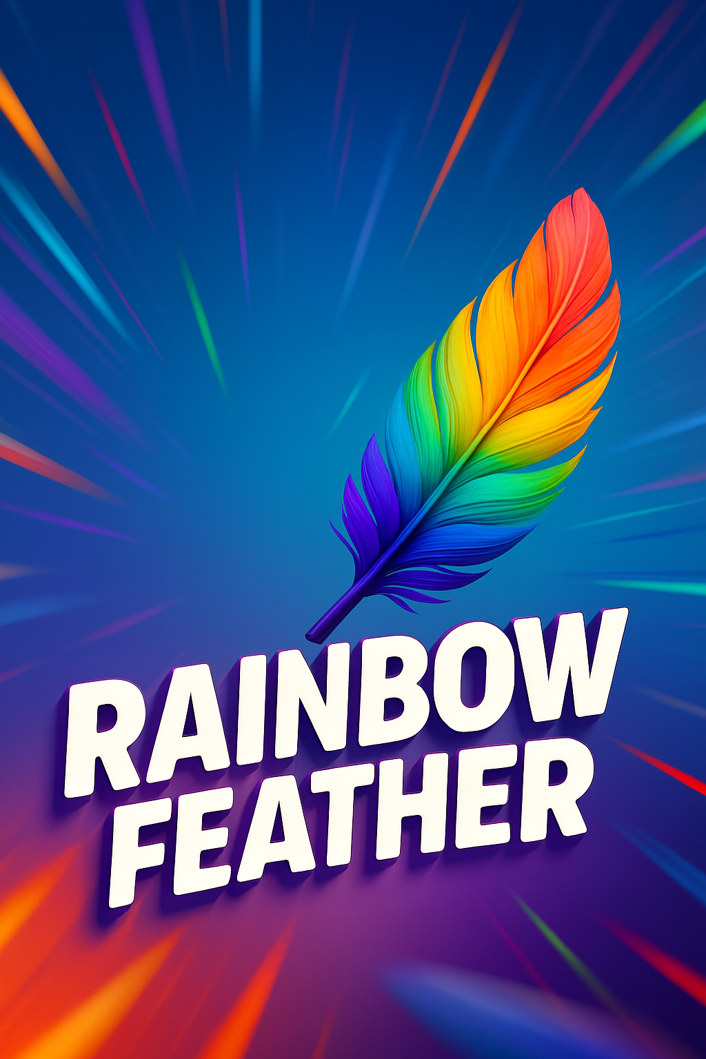 Dynamic Rainbow Feather Illustration with Bold Typography