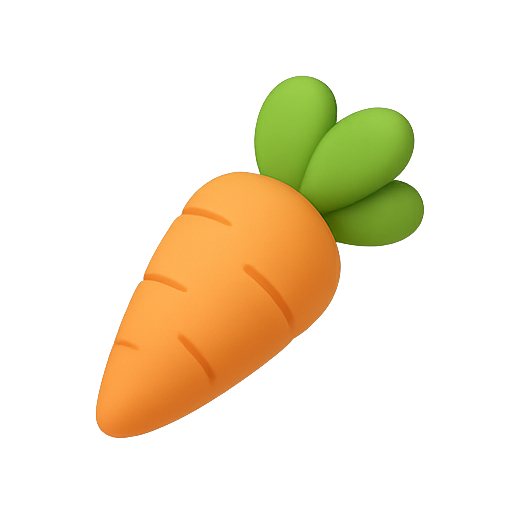 Colorful 3D illustration of a stylized carrot featuring a smooth surface and vibrant colors, ideal for children's content, food-related designs, or playful branding.