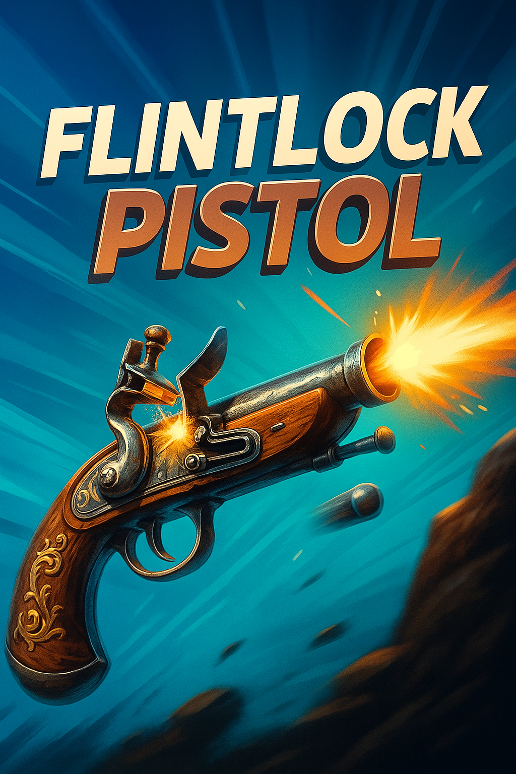 Dynamic Flintlock Pistol Illustration with Explosive Detail